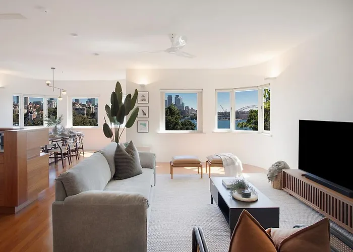 La résidence spacieuse est situé dans le quartier "Sydney Eastern Suburbs", à environ 10 minutes en voiture de l'Opéra de Sydney. Le Musée d'art contemporain est à environ 3,1 km du domicile de 90 m². Appartement 3Br Penthouse Harbour Views donne à quelques pas de Swifts.